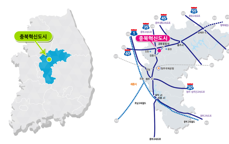 ![]() 출처: 내포신도시 홈페이지(위), 충북혁신도시 홈페이지(아래) |