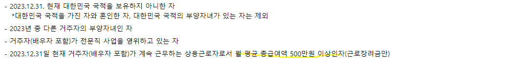 | 맞벌이 가구 (단, 배우자 총급여액 등이 3백만 원 이상) | 신청인과 배우자 각각 총급여액이 3백만 원 이상인 가구 |